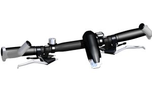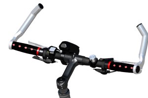 | マッピング(絵を貼り付ける)とバンプを使って、グリップに色づけ。上との違い分かりますか。 | 後部フォーク、ブレーキ等の色づけ。 |